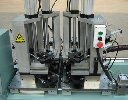 塑料门窗二位焊接机是塑料门窗生产过程中焊接和清角的主要设备,他具有一个左机头(1#)、一个右机头(2#)共二个机头,两个机头组合可以完成一个“┍┑”型的塑料门窗焊接和焊后清角。该机具有普通型材焊接和彩色型材无缝焊接两种功能,这两种功能可通过的调整实现相互转换。